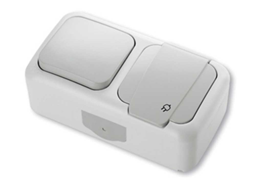 Блок ОП 1-кл. выкл. 10А+роз. 16А с/к, с/з, з/ш IP-54 Аллегро (5/50)