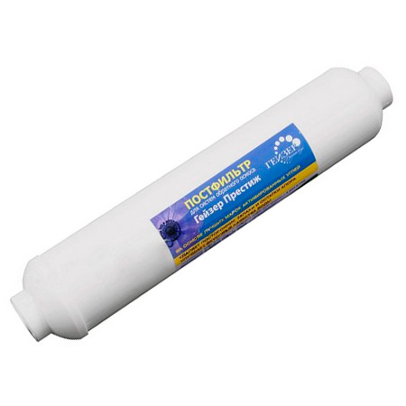 Для финишной очистки воды в системах обратного осмоса. Предназначен для удаления посторонних привкусов и запахов, которые могут появиться при длительном хранении воды в гидроаккумуляоре.