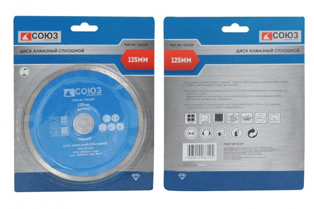 Алмазный диск, 125ммх22,2 сплошной , сухая резка, Sturm/СОЮЗ