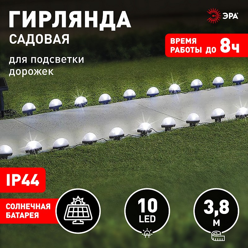 - Гирлянда садовая для подсветки дорожек 3.8м (длина рабочей части 1.8м) 10LED на солнечной батарее Эр
