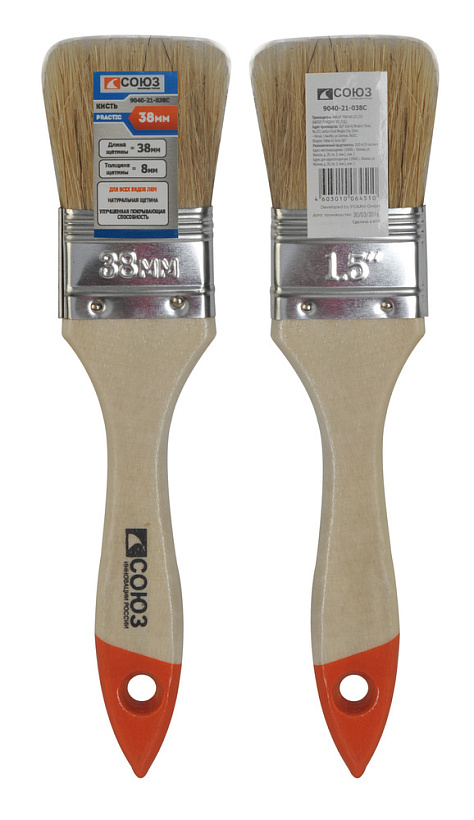 Кисть 1,5 плоская (38мм) Практик СОЮЗ натур щетина дерев. ручка