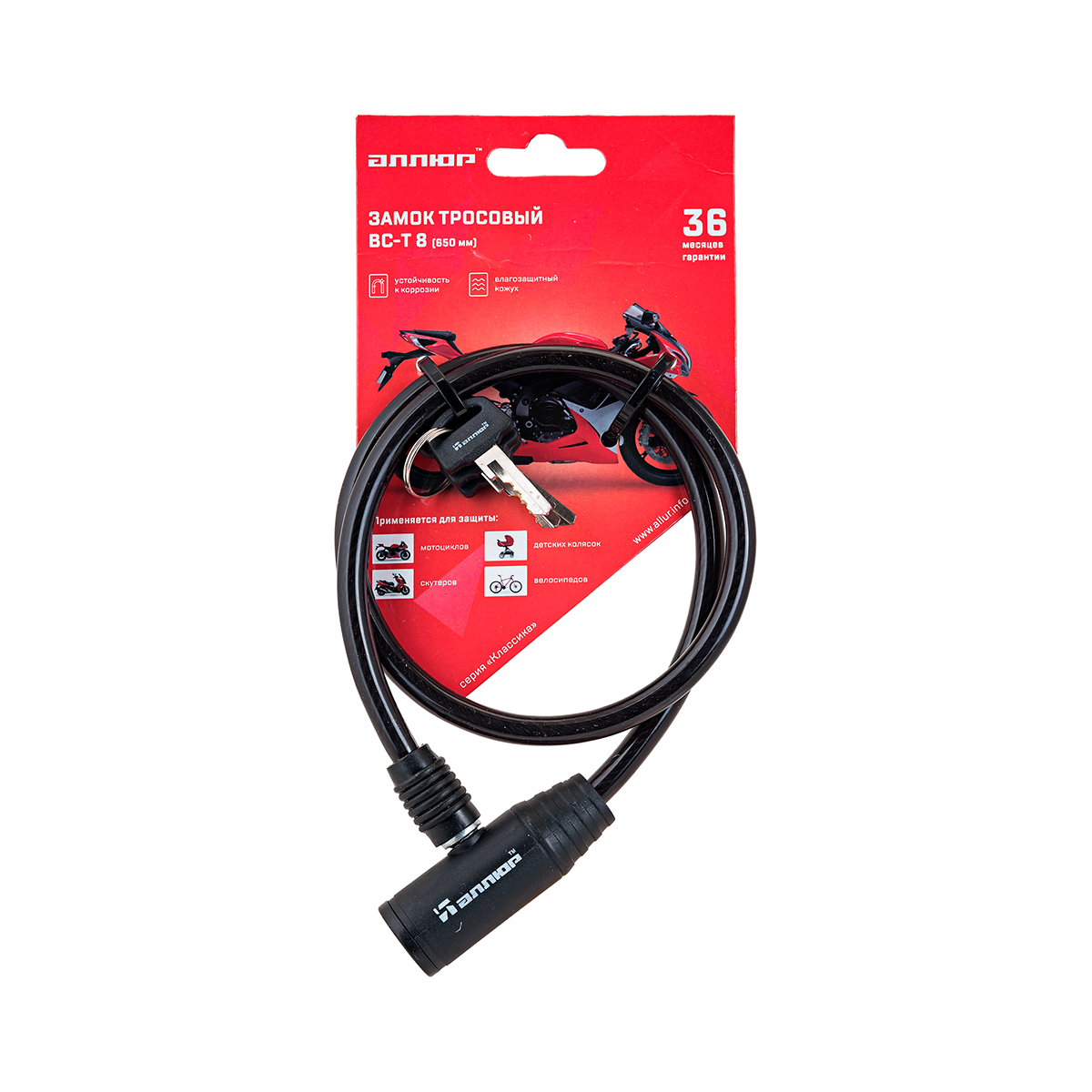 Замок навесной с тросом 650мм, d 8мм АЛЛЮР ВС-Т8