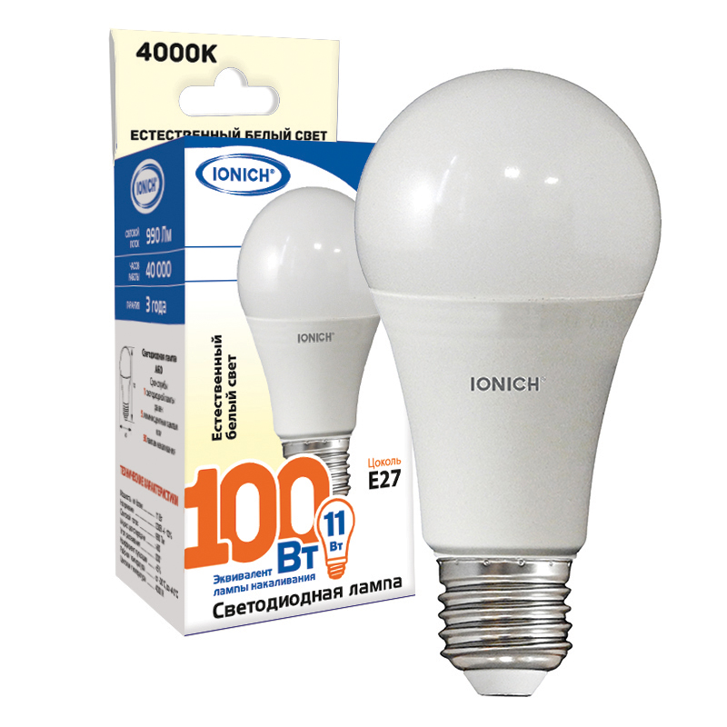 Лампа св. Е27 11Вт IONICH 4000К ILED-SMD2835-A60-11Вт-990Лм-220В E27