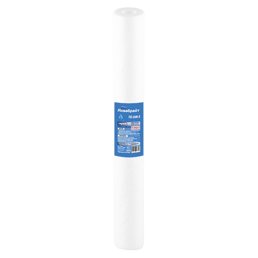 Картридж АКВАБРАЙТ ПП-20 М-Л изготовлен из спеченного полипропилена с пищевым допуском.