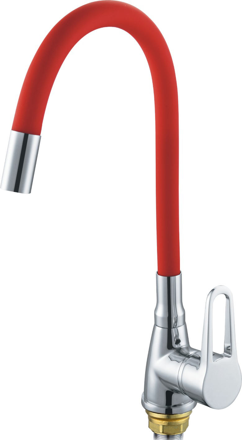 Смес. кухня 1-рук. бок. FAUZT крас. гибкий излив, с гайкой ф40 FZs822-B101