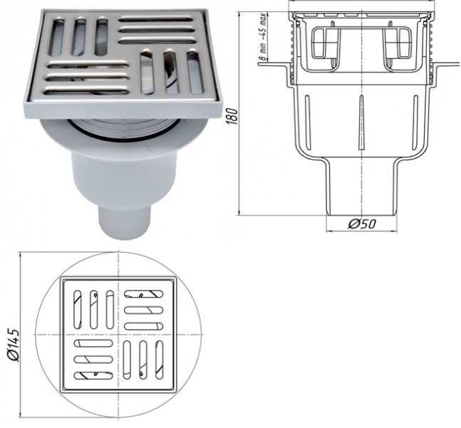 Трап вертик. 50 нерж. реш. 10х10 регулир. ТА5702 АНИ (12)