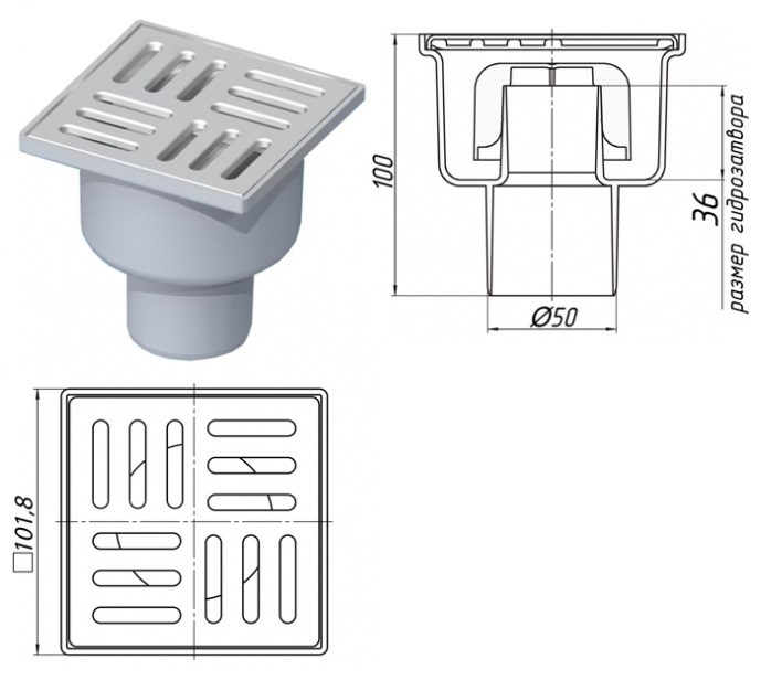 Трап вертик. 50 нерж. реш. 10х10, сухой TQ5202 АНИ (50)