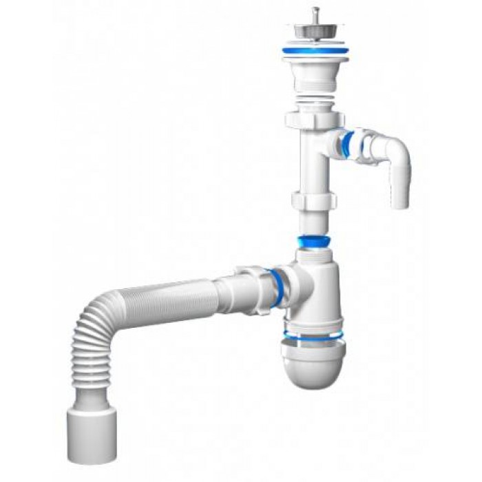 Сифон АНИ Пласт C0315 — это современное и универсальное решение для организации слива воды в кухонной мойке с возможностью подключения стиральной или посудомоечной машины.