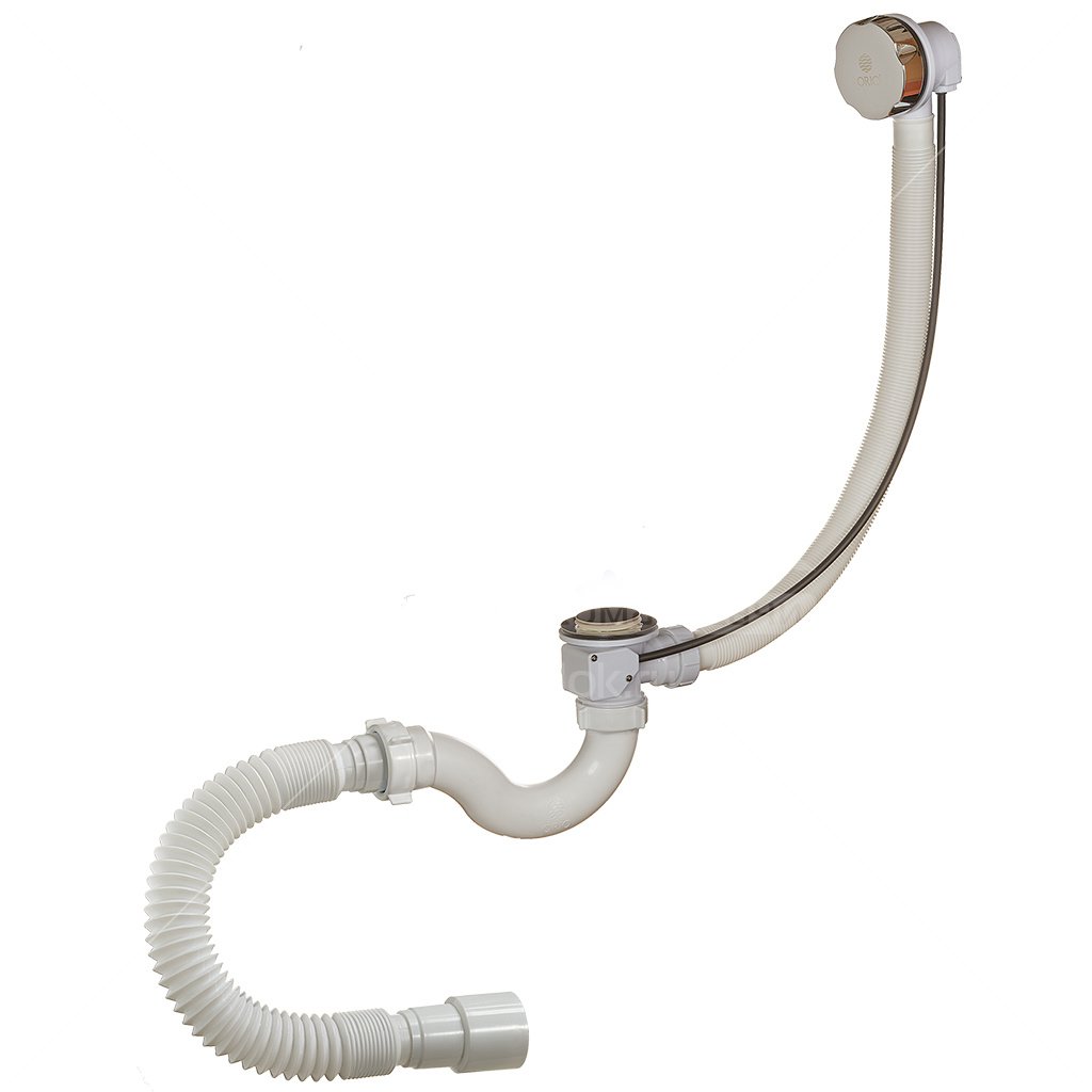 А-24089 Cифон для ванны (обвязка) ОРИО 1 1/2х40, с переливом и гибкой трубой 40-40/50 (полуавтомат