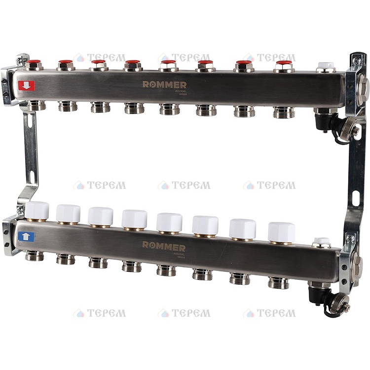 Кол. группа б/расх. 1х-8 вых. нерж. ROMMER в сборе с клапаном вып. воздуха и сливом