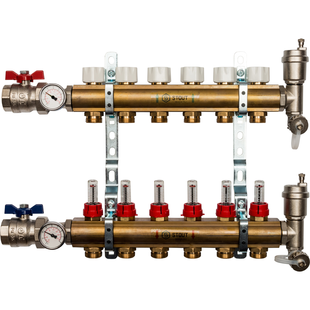 Кол. группа 1х-6 вых. с расх. латунь STOUT (комплект)