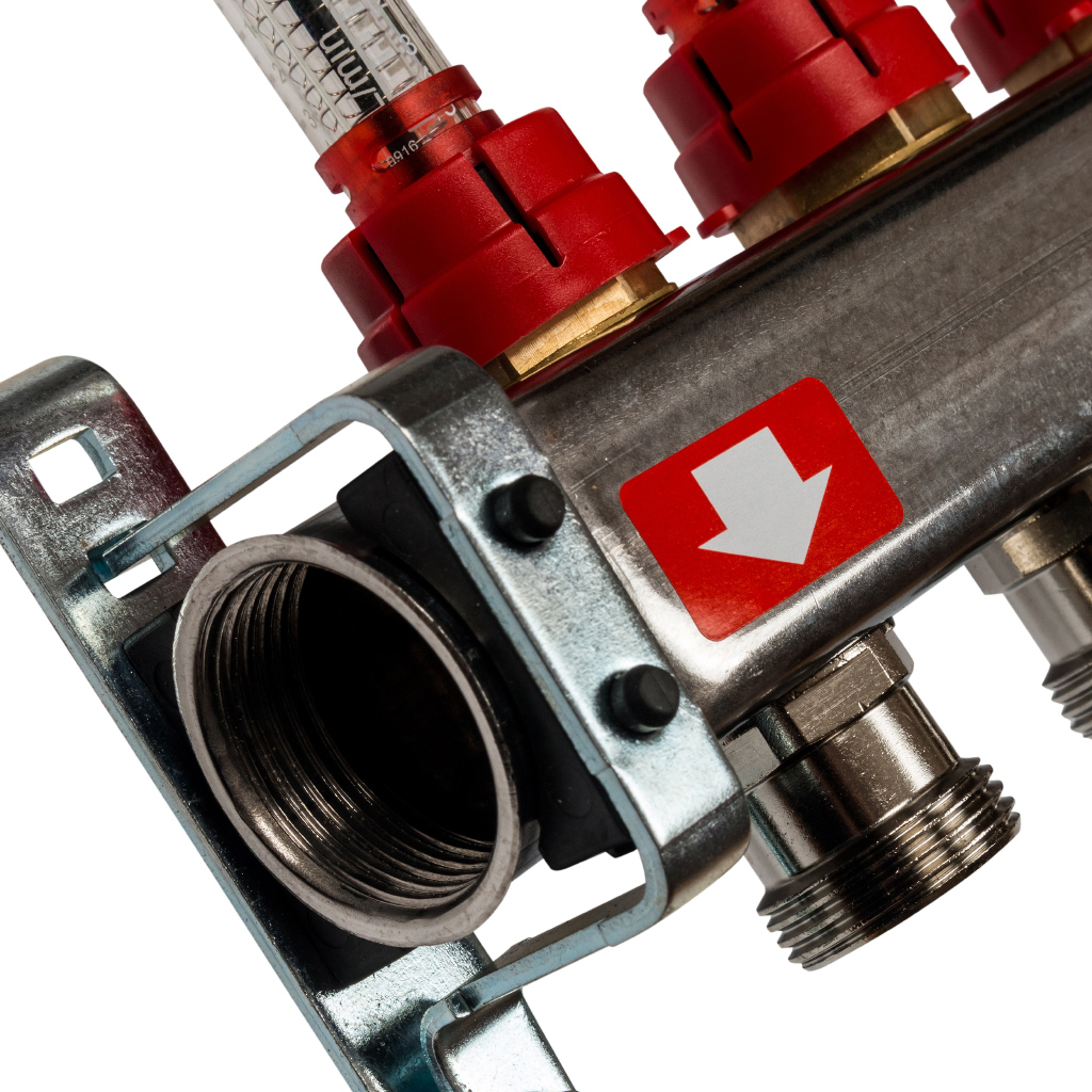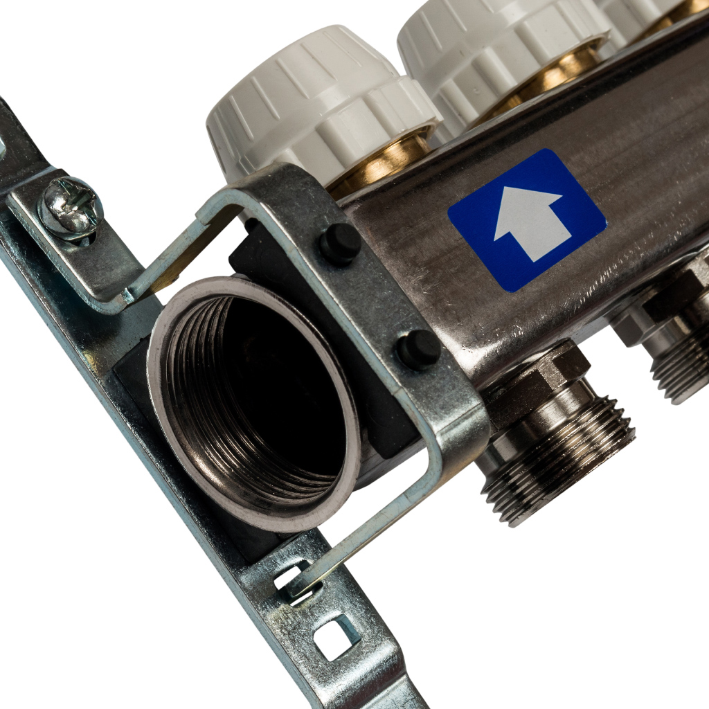 Кол. группа 1х-6 вых. с расх. нерж. STOUT в сборе с клапаном вып. воздуха и сливом