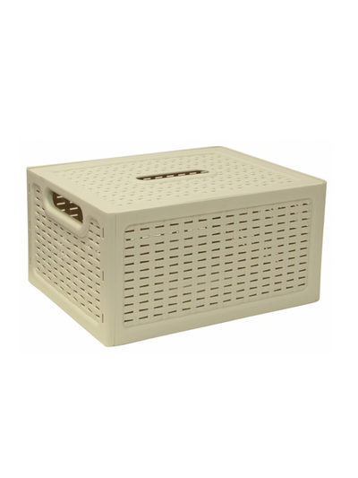 Ящик с крышкой 370х280х190мм РОТАНГ белый ротанг (М-пластика) (М 2375)